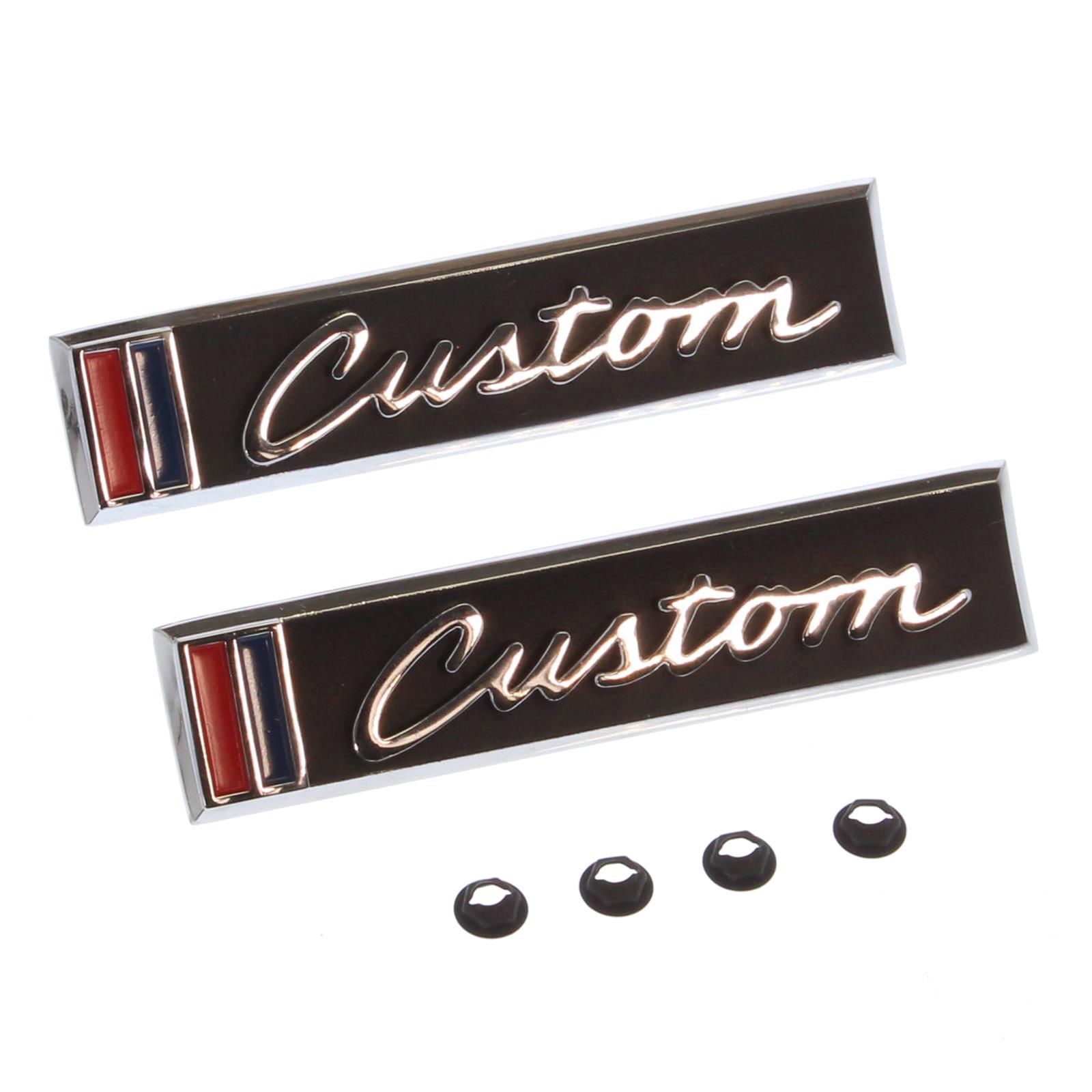 1967-68 Chevrolet / GMC Truck “CUSTOM” Door Emblems, GM Restoration Part (Replaces GM# 3901462) Pair. (67-16723)