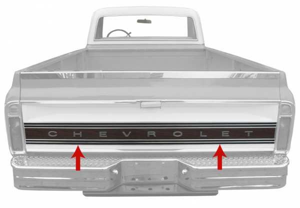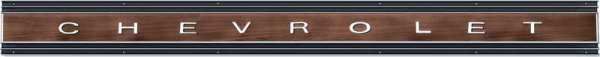 1969-72 Chevrolet Truck Tailgate Band, Fleetside, Woodgrain -With C H E V R O L E T Letters- (complete with mounting hardware) GM Restoration Part (Replaces GM# 3955316) Each.