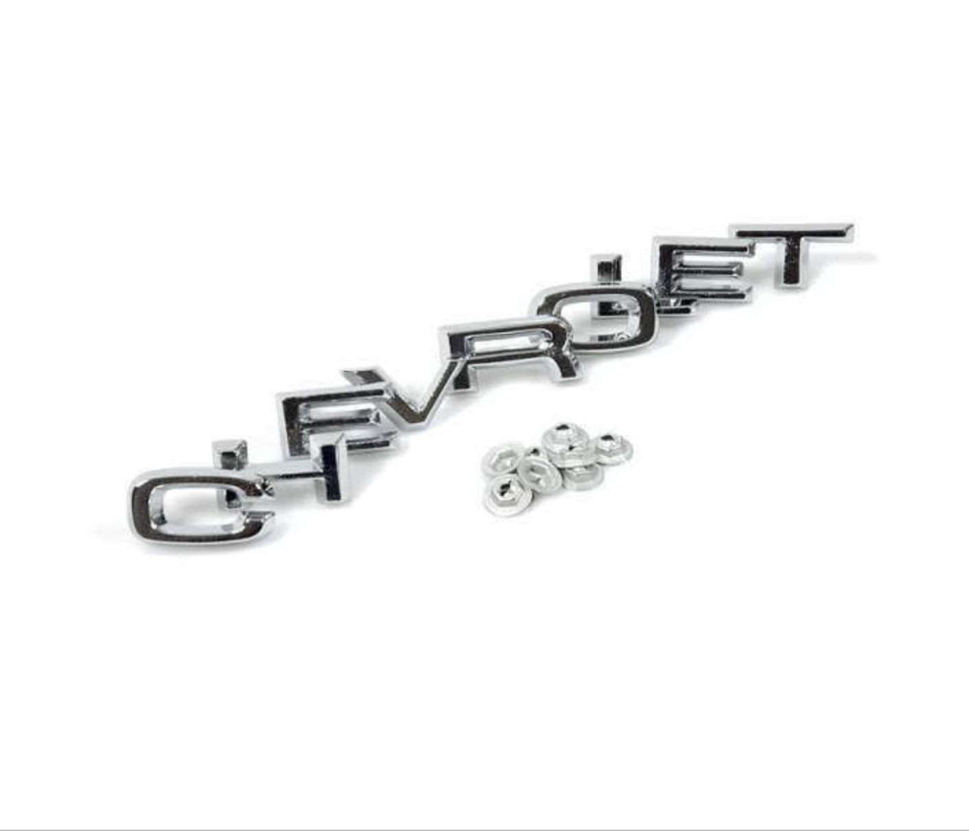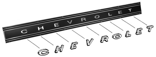 1969-72 Chevrolet Truck “C H E V R O L E T” Tailgate Band / Applique Letters Set, Chrome (complete with mounting clips) GM Restoration Part. 9-Piece Set.