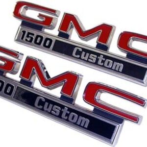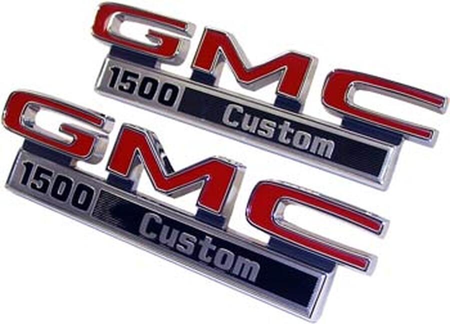 1971-72 GMC Truck “GMC 1500 CUSTOM” Fender Side Emblems, GM Restoration Part (Replaces GM# 3999364) Pair. (71-16721-G15C)