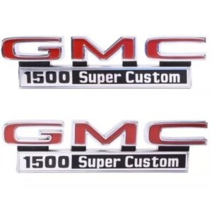 1971-72 GMC Truck “GMC 1500 SUPER CUSTOM” Fender Side Emblems, GM Restoration Part (Replaces GM# 3999367) Pair. (71-16721-G15SC)