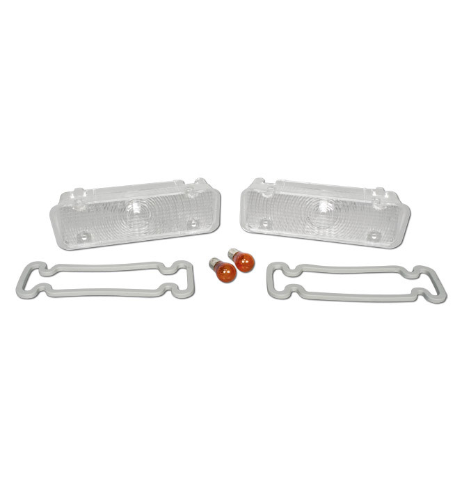 1971-72 Chevrolet Truck Park Light Conversion Kit. Kit Includes: 2 Clear Park Light Lenses, 2 Park Light Lens Gaskets, 2 Amber Bulbs. Kit. 71-13208/9-CKIT