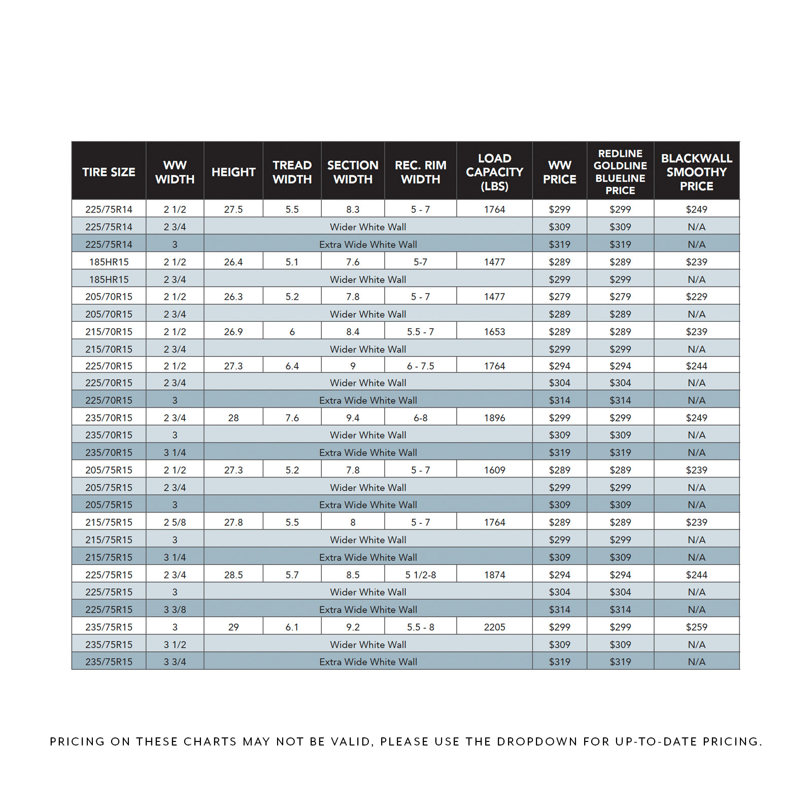 215/75R14, 225/75R14, 750/14