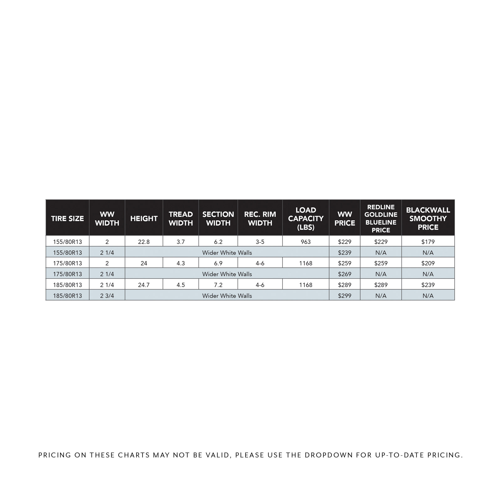 Whether it be a vintage Mercedes, a 60’s Mustang, Ford Falcon, Corvair or even an Amphicar, Diamond Back has the perfect modern radial 13″ tires for your ride. All of these sizes can be made as a tin or wide Whitewall, Redline, Goldline or most anything you can dream up! For the vintage Mercedes crowd, we have a fantastic Vredestein Sprint Classic tire built in Europe for European cars. This 640/700R13 is a hard to find but perfect fit for many classic Mercedes and also many U.S. cars. We also have available a rare 185/80R13 Maxxis Brand tire, perfect for Amphicars, Corvairs and more. Although the tires on your classic are smaller than most, putting Diamond Back’s ensures they make the big test impact!