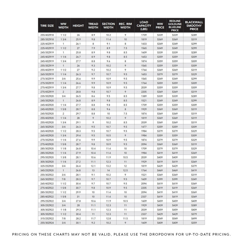 New for 2023, the Diamond Back LX line includes never before offered large diameter and low profile sizes. This includes 22” options and even a few new 24” options! With dozens of available sizes, you are guaranteed to find a staggered setup for your custom build. The AA traction and temperature rating allows this tire to be used universally on everything from your big body cruiser to your high powered muscle car. Don’t forget, all of our tires are available in Whitewalls, Redlines, Goldlines, Bluelines and more. Please call for potentially unlisted 24” tire sizes!